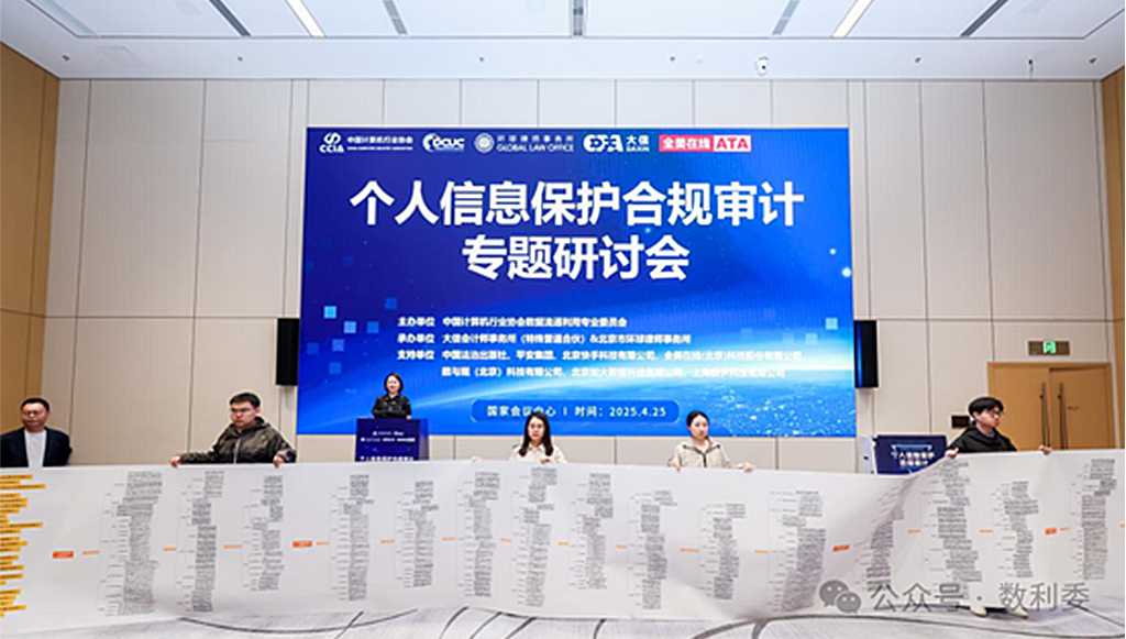 4 月 25 日,在《个人信息保护合规审计管理办法》即将生效前夕,由中国计算机行业协会数据流通利用专业委员会主办,大信会计师事务所(特殊普通合伙)与北京市环球律师事务所联合承办的“个人信息保护合规审计专题研讨会”,在国家会议中心盛大召开,来自法律、技术、管理、审计等多领域的政府部门、学术界、企业界和法律实务界的 200 余位专家代表齐聚一堂,围绕个人信息保护合规审计的理论研究、业务指引、技术工具、实践成果等关键议题,展开深度交流,共同剖析行业面临的机遇与挑战,积极探索合规审计的创新发展路径。此次论坛,共有2000余人在线参与观点分享。